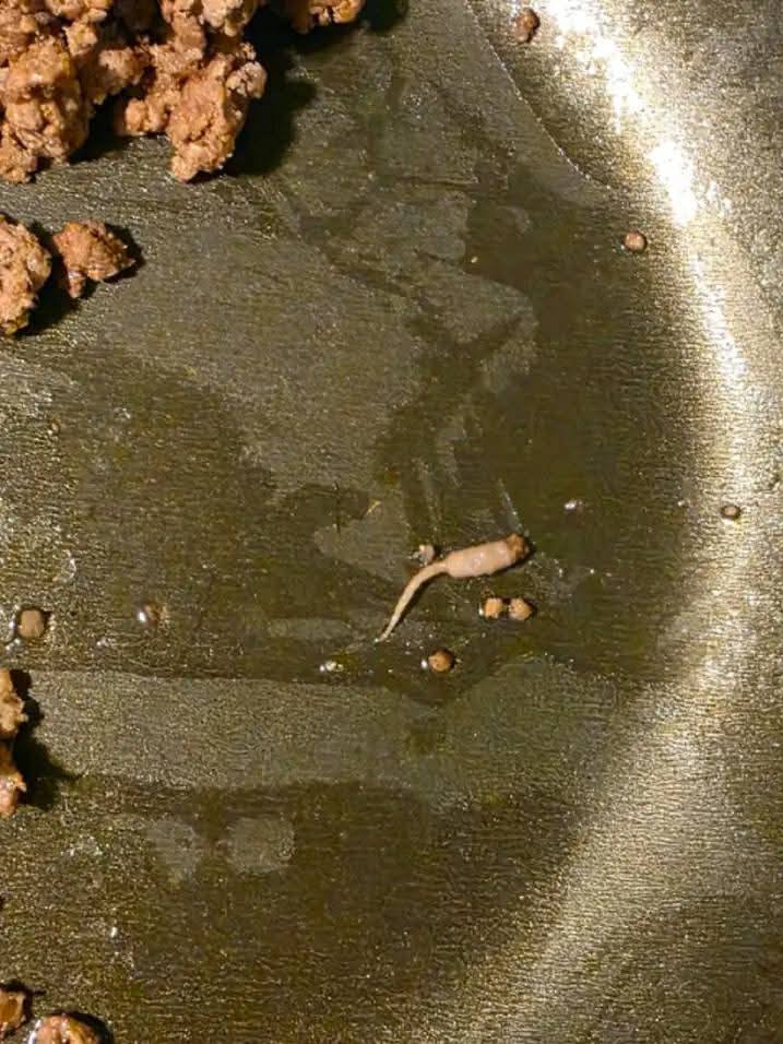 Il s’agissait d’un élément naturellement présent dans la viande : un morceau de tissu conjonctif, comme un petit tendon ou une partie de gras, qui avait changé d’apparence sous l’effet de la chaleur.